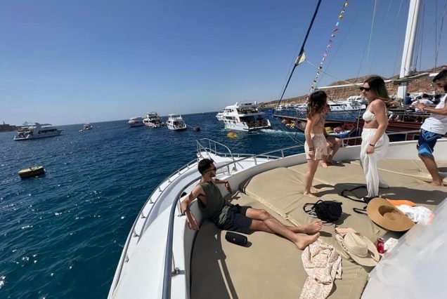 • From the seaport, you sail on a yacht to the world famous nature reserve Ras Mohamed. You are waiting for 3 stops in the open sea, “White Island” and at 2 most beautiful coral reefs of the reserve, for snorkeling (snorkeling) or diving (for extra cost), Accompanied by English-speaking guide-diving instructor, as well as a snorkeling guide and photographer.